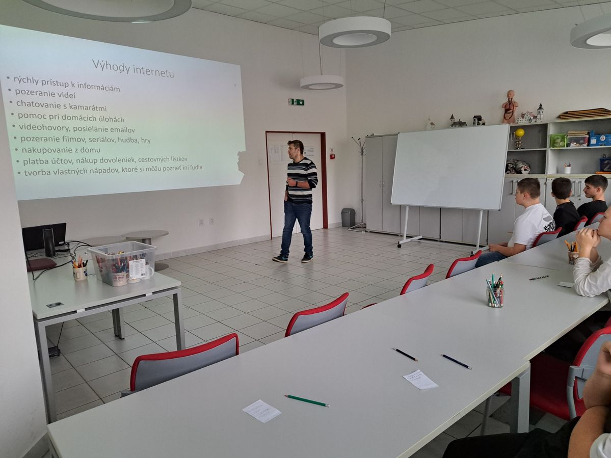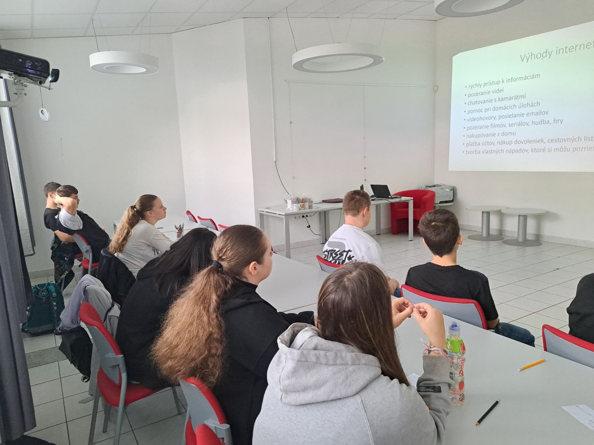 9.10.2025 sme v Krajskej knižnici v Žiline absolvovali posedenie s pánom Mgr. Milošom Zvrškovcom. Dnes si pre nás, žiakov 9.A a 2. AUT, pripravil zaujímavé informácie z oblasti internetu. Výhody, nevýhody, nástrahy, zábava a podobne. Ďakujeme za nové informácie z tejto oblasti.