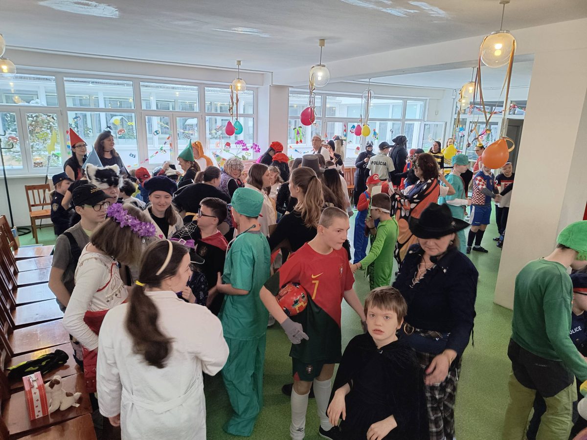 „Po roku sa opäť na našej škole konal jeden z najveselších dní – KARNEVAL. Jedáleň sa premenila na farebnú tanečnú sálu plnú masiek, kostýmov a dobrej nálady. Z detí sa stali rozprávkové bytosti, superhrdinovia, zvieratká a rôzne originálne postavy. Spoločne si užívali veľa smiechu, tanec a hudbu. Nechýbalo ani vyhodnotenie najkrajších masiek. Vidíme sa znovu o rok!“