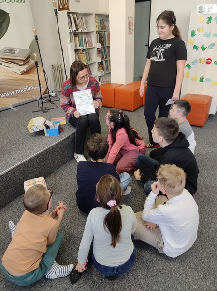 Dňa 10.3.2026 sme sa v rámci ŠKD zúčastnili zaujímavého popoludnia v mestskej knižnici Vlčince.Po príchode nás privítala milá pani knihovníčka, ktorá mala pre naše deti prichystaný pútavý a zábavný program. Deti si s radosťou posadali do kruhu a začala sa hodina plná zábavných momentov. Deti si mali možnosť vyskúšať hru na „tichý orchester“ kde si precvičili sústredenie a tímovú spoluprácu. Po tejto hre nasledovalo hádzanie plyšovou kockou a hádanka, ktorú knihu pani knihovníčka opisuje. Niektoré knižky boli deťom známe hneď, iné boli pre ne veru ťažký oriešok ! O dôvod viac navštíviť toto hodnotné miesto opäť a stráviť tu aj nabudúce chvíle plné zábavy a tiež nových vedomostí. Ďakujeme za príjemný čas a tešíme sa na ďalšiu návštevu!