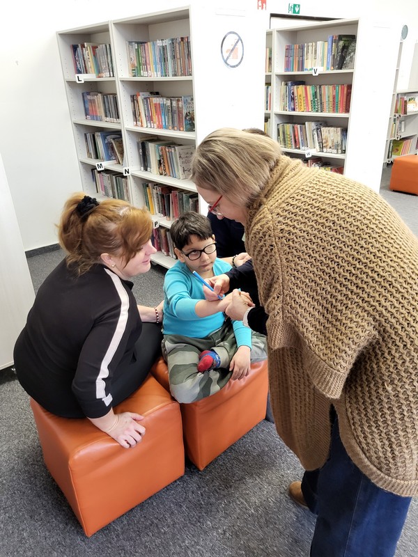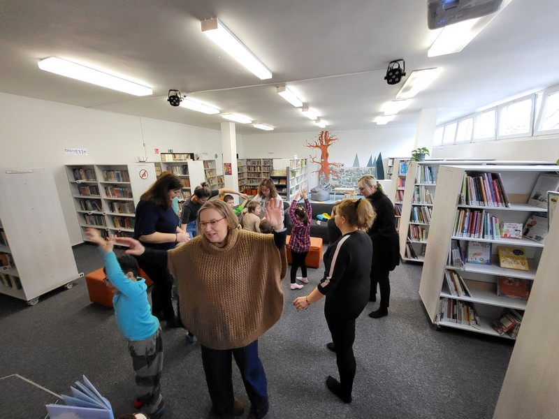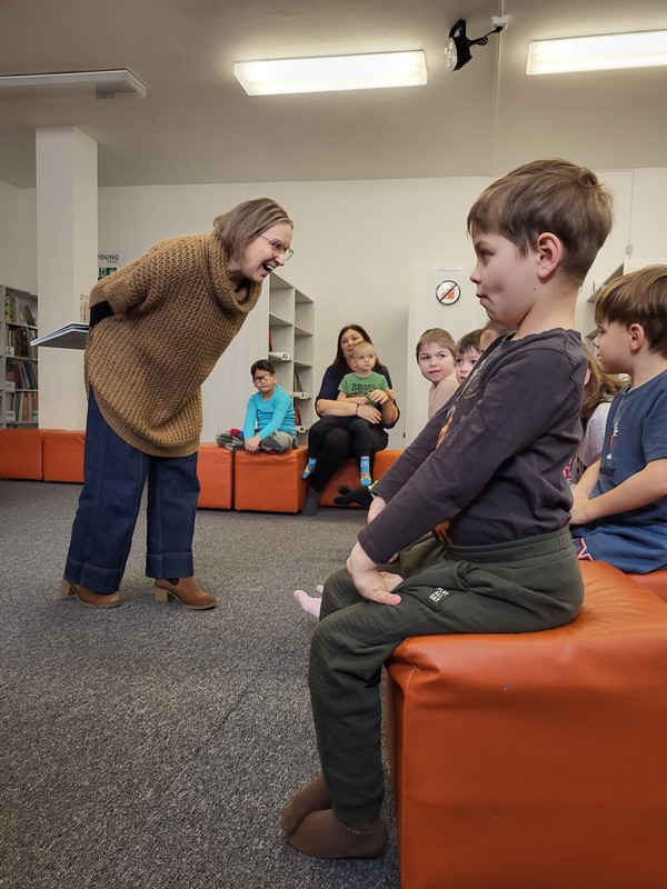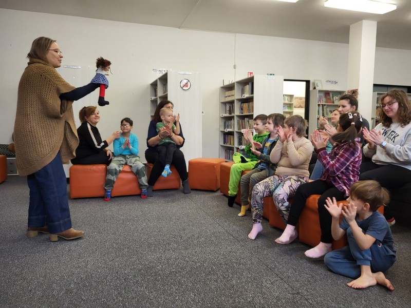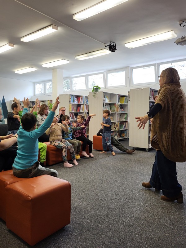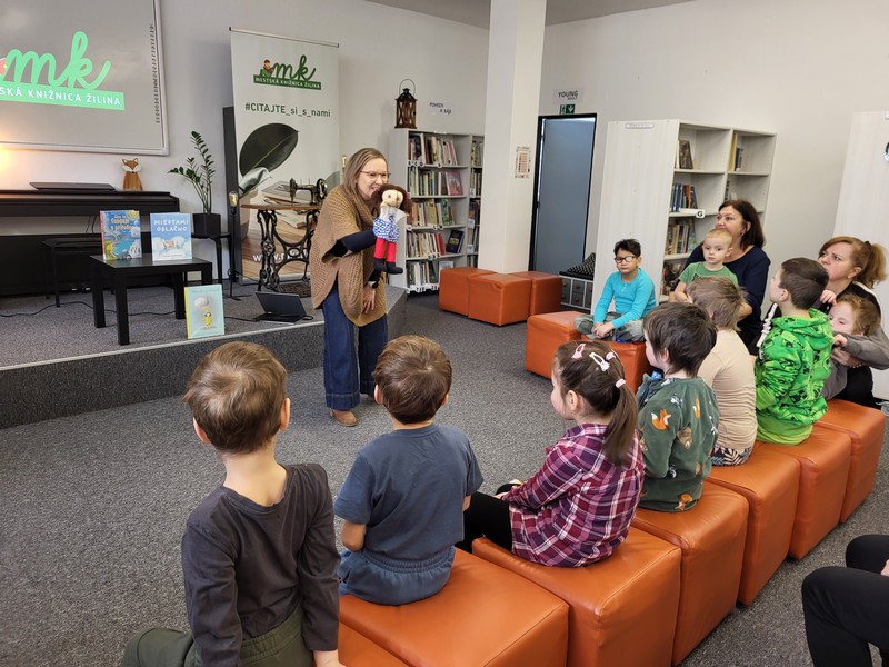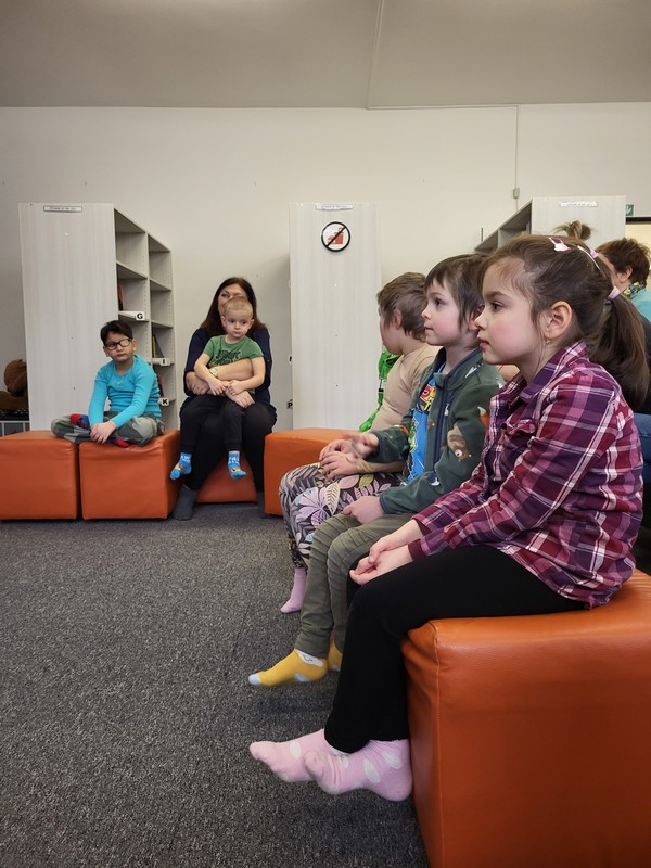 V pondelok 16. februára 2026 sme s deťmi opäť zavítali do knižnice na Vlčincoch. Hneď pri príchode nás milo privítala pani knihovníčka spolu s maňuškou Emkou, ktorá si deti okamžite získala.