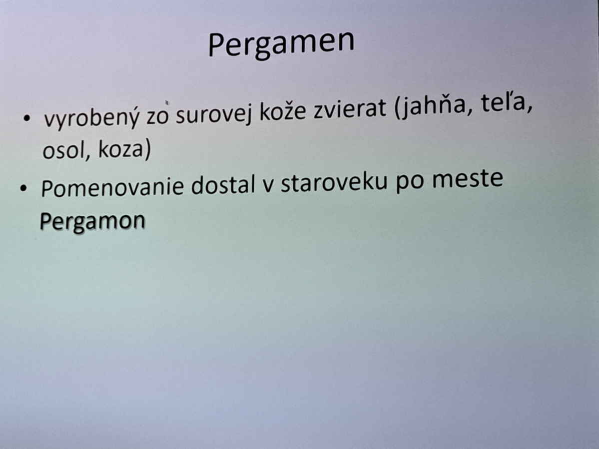 Žiaci 9.A a 2 AUT navštívili besedu na tému História a vznik knihy. Pán Miloš Zvrškovec najprv žiakom odprezentoval celú históriu vzniku písania, rozvoja uchovávania informácii až po kníhtlač. V závere si žiaci vyskúšali písanie svojho mena pomocou znakov v hlaholike a znakov čínskej abecedy. Téma žiakov zaujala a tešíme sa na ďalšie nové poznatky a zaujímavosti.
