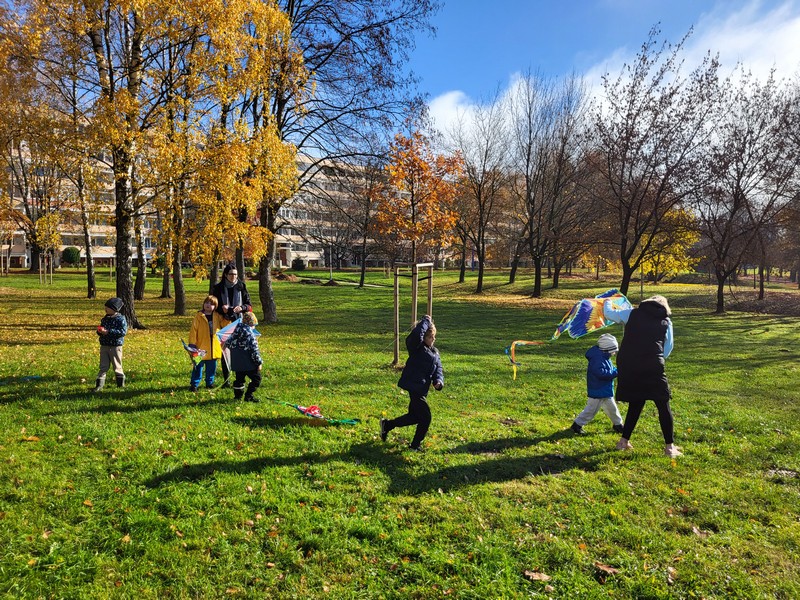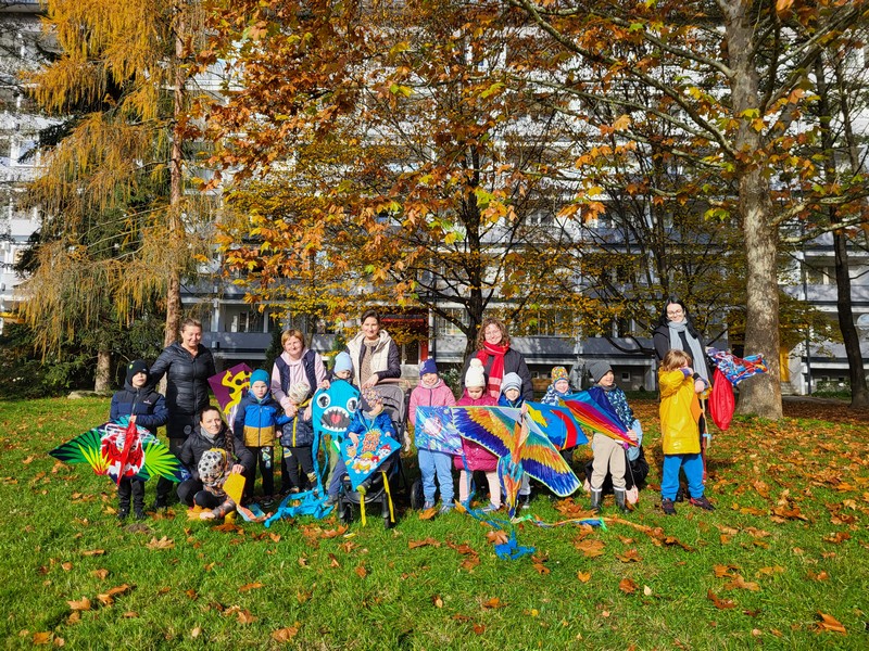 Naši najmenší škôlkari si 6. 11. 2025 užili veselú šarkaniádu. Počasie nám prialo ukážkovo! Slniečko hrialo, farbiac listy stromov do zlatista a červena. A hoci nás v tento deň neprivítal silný vietor, čo by šarkanom ulahodil, deti sa nevzdali! S pretekárskym nasadením a úsmevom na tvári si sami vytvorili potrebný prúd vzduchu a vychutnali si pohľad na to, ako sa ich papieroví kamaráti vznášajú k oblohe. Už teraz sa tešíme na ďalšie spoločné jesenné dobrodružstvá!