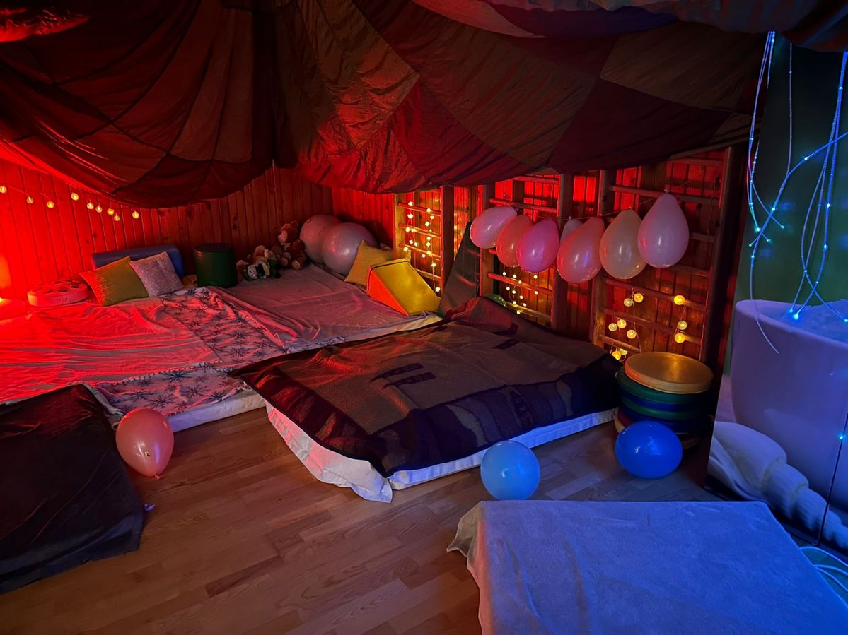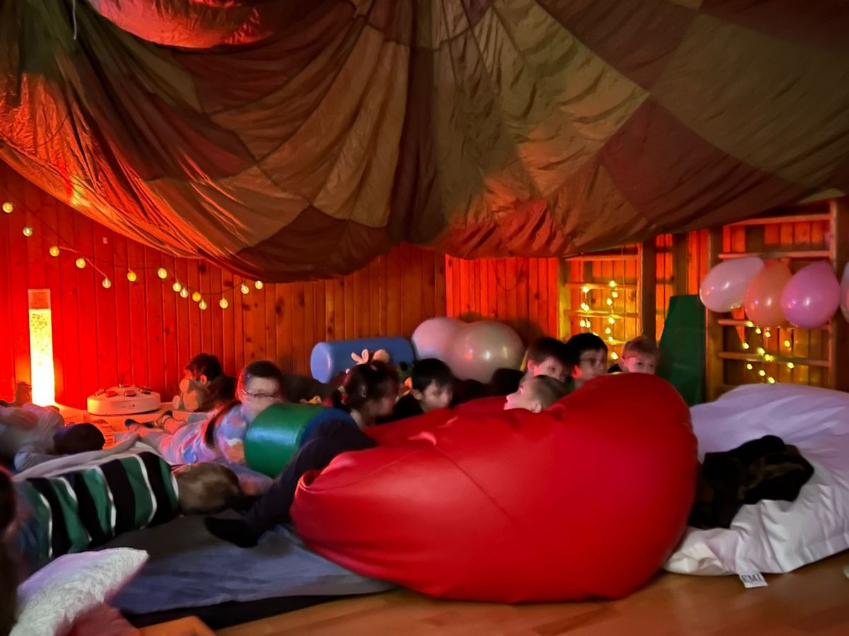 Minulý týždeň sa u nás uskutočnil zážitkový týždeň pod názvom Čajovňa, ktorý bol zameraný na relaxáciu, upokojenie a rozvoj zmyslového vnímania. V telocvični tím ŠPT pripravil príjemné oddychové prostredie v prítmí so svetielkami, kde si mohli vypočuť ukľudňujúcu meditáciu a naplno sa ponoriť do atmosféry pokoja.